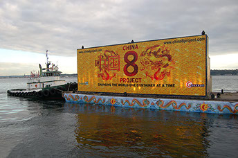 China 8 was an interesting premise: advertising on shipping containers. Here is a partial series of photographs I took from their dramatic open-air launch on the Seattle waterfront. CHINA 8