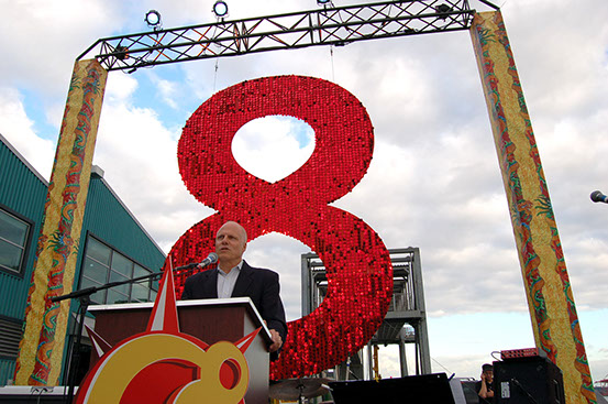 China 8 was an interesting premise: advertising on shipping containers. Here is a partial series of photographs I took from their dramatic open-air launch on the Seattle waterfront. CHINA 8